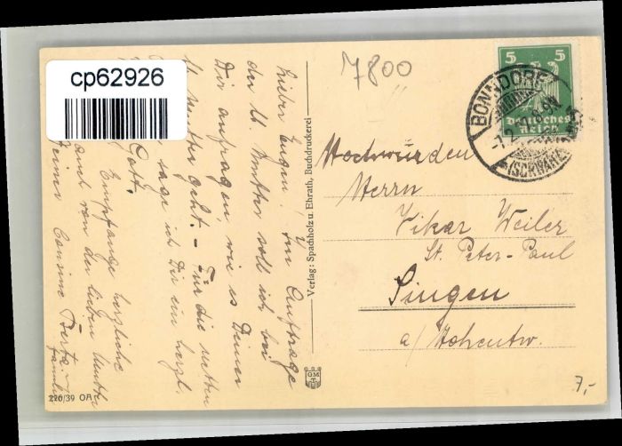 70832492 alte Postkarte Bonndorf Schwarzwald Schloss postalisch gelaufen KatCode: 11110008337022