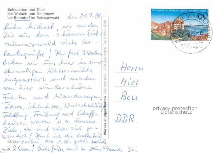 72645274 alte Postkarte Bonndorf Schwarzwald Schluchten und Taeler der Wutach und Gauchach Museumsbahn Stuehlingen postalisch gelaufen Erhaltung siehe scans [WerneD78] KatCode: 11110008337022
