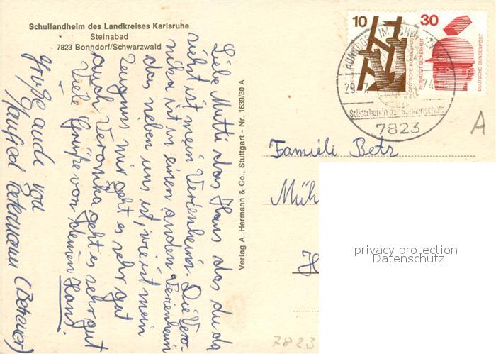 73722249 alte Postkarte Bonndorf Schwarzwald Schullandheim Steinabad postalisch gelaufen Erhaltung siehe scans [LiesaD40] KatCode: 11110008337022