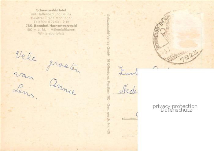 73844878 alte Postkarte Bonndorf Schwarzwald Schwarzwald Hotel postalisch gelaufen Erhaltung siehe scans [FriedD77] KatCode: 11110008337022