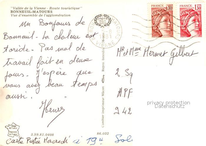 13582599 Bonneuil-Matours Vue d’ensemble aerienne de l’agglomeration postalisch gelaufen Erhaltung siehe scans [WerneD78] carte postale Wern Katcode 11170086186032