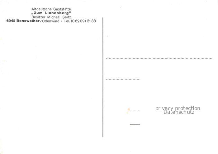 74048043 Bonsweiher Altdeutsche Gaststaette Zum Linnenberg Gastraeume postalisch nicht gelaufen Erhaltung siehe scans [FriedD77] KatCode: 11110006431017