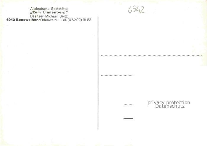 74048064 Bonsweiher Altdeutsche Gaststaette zum Linnenberg Gastraeume postalisch nicht gelaufen Erhaltung siehe scans [FriedD77] KatCode: 11110006431017