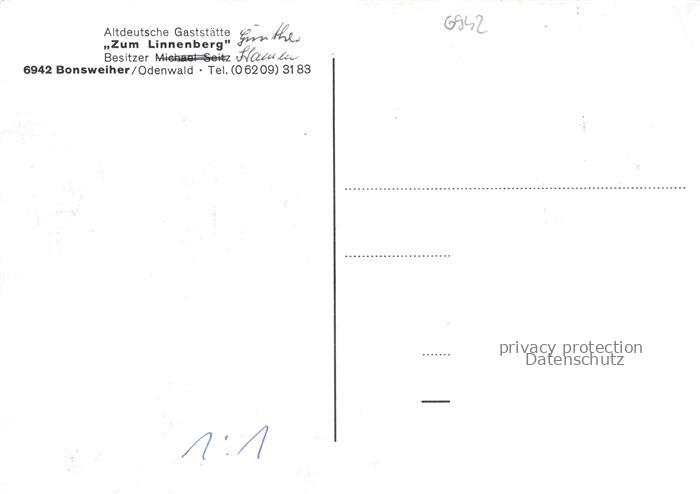 74048063 Bonsweiher Altdeutsche Gaststaette zum Linnenberg Gastraeume postalisch nicht gelaufen Erhaltung siehe scans [FriedD77] KatCode: 11110006431017