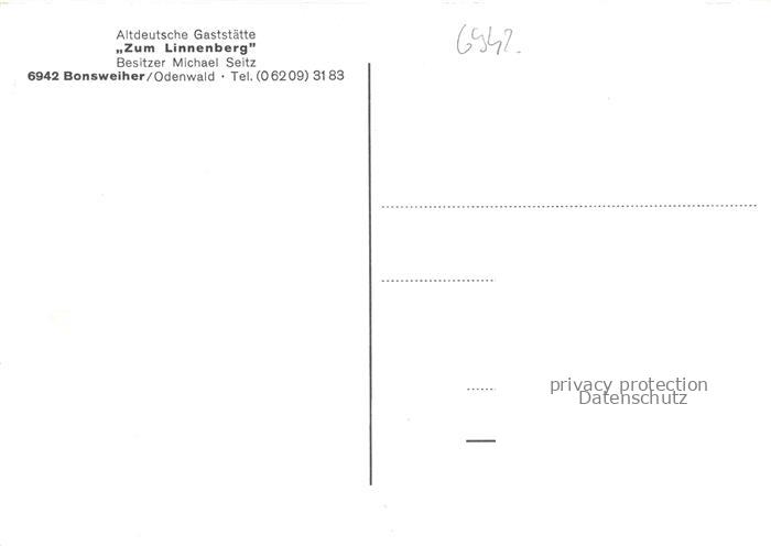 74048115 Bonsweiher Altdeutsche Gaststaette zum Linnenberg Gastraeume Restaurant postalisch nicht gelaufen Erhaltung siehe scans [FriedD77] KatCode: 11110006431017