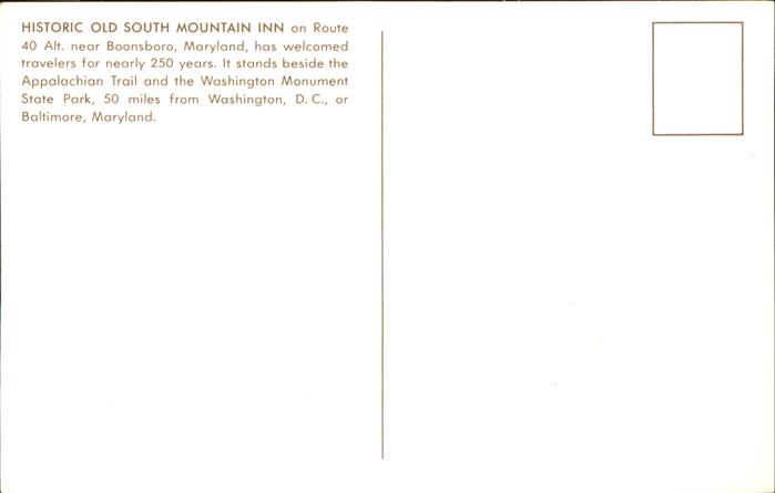 11491257 Boonsboro Historic Old South Mountain Inn postalisch nicht gelaufen Erhaltung siehe scans KatCode: 14140220000000