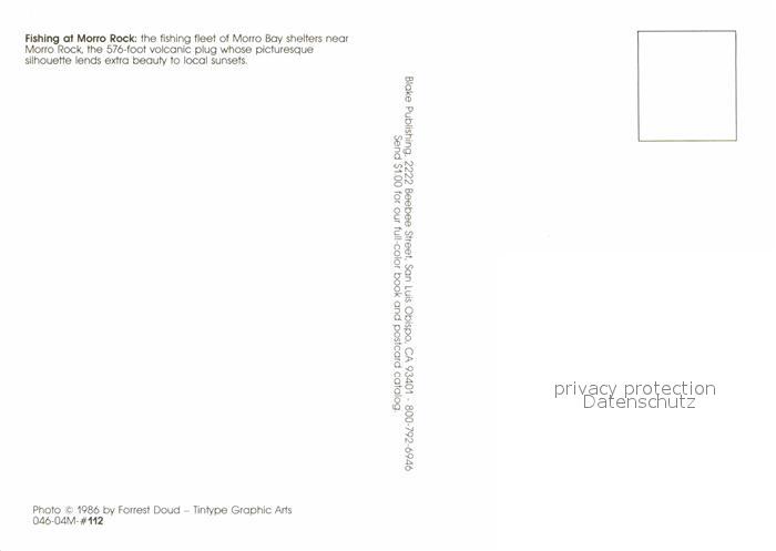 Boote Fischkutter Morro Rock Morro Bay postalisch nicht gelaufen Erhaltung siehe scans [PaolaD17]