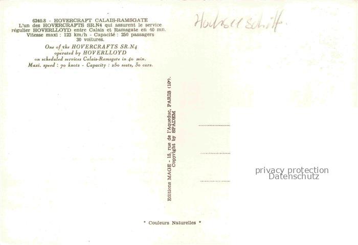 74052133 Boote Hovercraft Calais Ramsgate Hoverlloyd postalisch nicht gelaufen Erhaltung siehe scans [IrynaD87] KatCode: 22480000000600