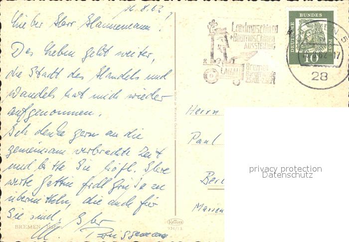 alte Postkarte Boote Schiffe Bremen Hafen postalisch gelaufen Erhaltung siehe scans