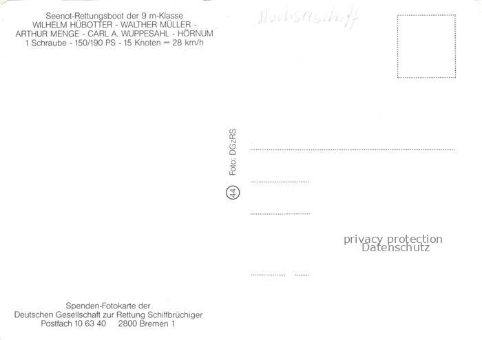 74052020 Boote Seenot Rettungsboot 9 m Klasse Wilhelm Huebotter Walter Mueller Wuppesahl Hoernim postalisch nicht gelaufen Erhaltung siehe scans [IrynaD87] KatCode: 22480000000600