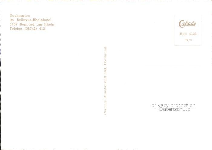 71952505 Boppard Rhein Bellevue Rheinhotel Dachgarten postalisch nicht gelaufen Erhaltung siehe scans KatCode: 11110007140501