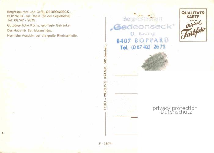 72780771 Boppard Rhein Bergrestaurant Cafe Gedeonseck Sesselbahn postalisch nicht gelaufen Erhaltung siehe scans [FriedD77] KatCode: 11110007140501