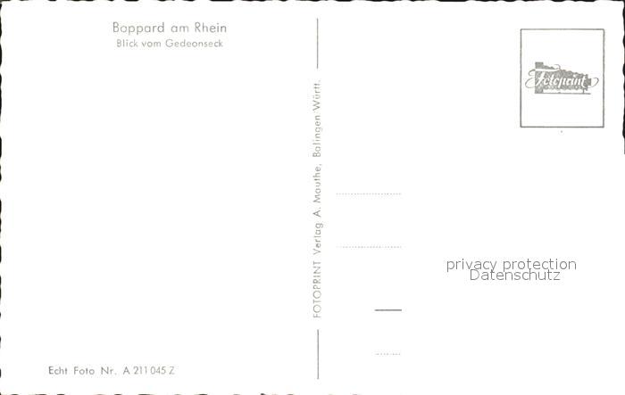 72433047 Boppard Rhein Blick vom Gedeanseck auf Rhein postalisch nicht gelaufen Erhaltung siehe scans KatCode: 11110007140501