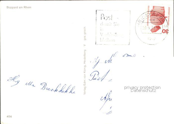 72430339 alte Postkarte Boppard Rhein Fliegeraufnahme postalisch gelaufen Erhaltung siehe scans KatCode: 11110007140501