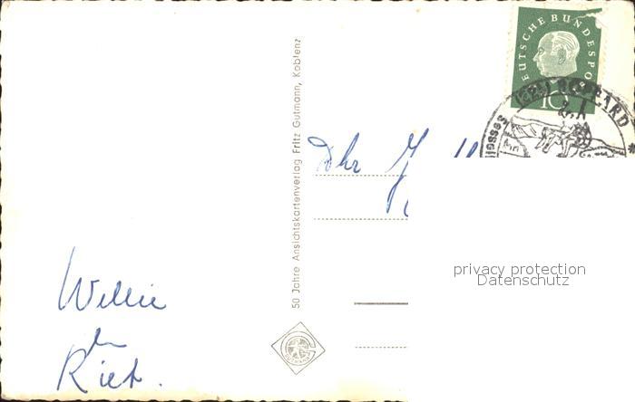 72062853 alte Postkarte Boppard Rhein Fliegeraufnahme mit Vers postalisch gelaufen Erhaltung siehe scans KatCode: 11110007140501