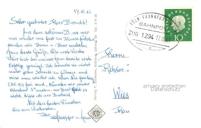 73160037 alte Postkarte Boppard Rhein Fliegeraufnahme Rheinpartie postalisch gelaufen Erhaltung siehe scans [LiesaD40] KatCode: 11110007140501