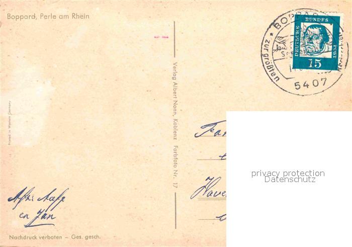 72655107 alte Postkarte Boppard Rhein Fliegeraufnahme Rheinpartie postalisch gelaufen Erhaltung siehe scans [LiesaD40] KatCode: 11110007140501