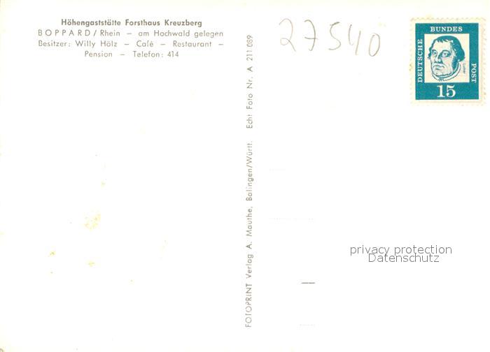 73734718 alte Postkarte Boppard Rhein Hoehengaststaette Forsthaus Kreuzberg postalisch gelaufen Erhaltung siehe scans [WerneD78] KatCode: 11110007140501