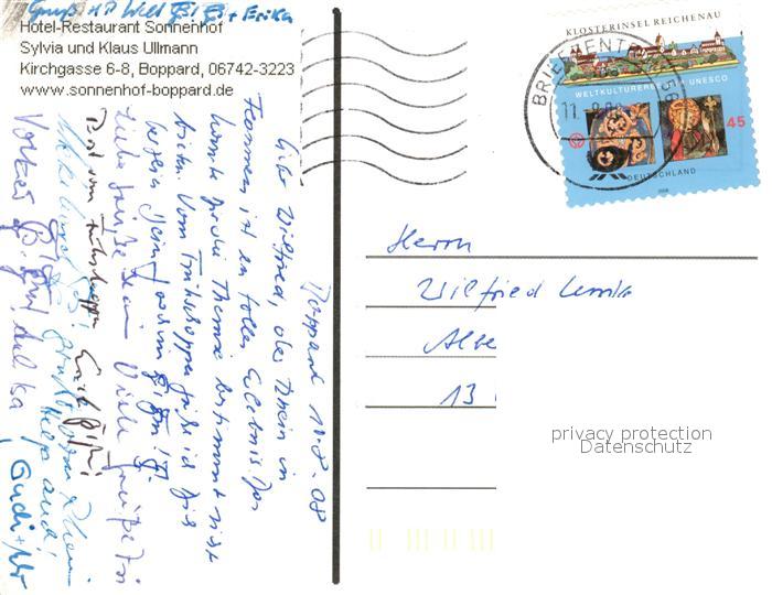 73086223 alte Postkarte Boppard Rhein Hotel Restaurant Sonnenhof postalisch gelaufen Erhaltung siehe scans [KathaD81] KatCode: 11110007140501