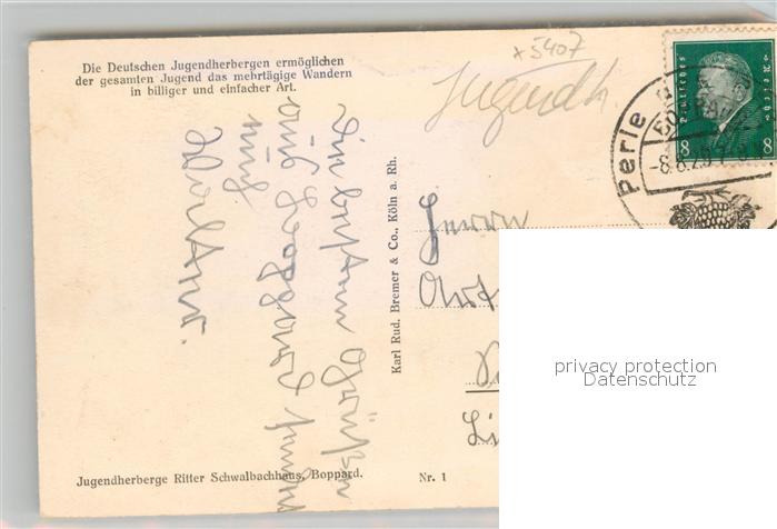 42975675 alte Postkarte Boppard Rhein Jugendherberge Ritter Schwalbachhaus postalisch gelaufen Erhaltung siehe scans [KathaD81] KatCode: 11110007140501