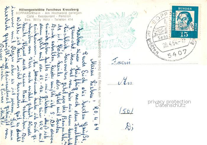 73318510 alte Postkarte Boppard Rhein Kreuzberg Kapelle Panorama Blick vom Forsthaus postalisch gelaufen Erhaltung siehe scans [FriedD77] KatCode: 11110007140501
