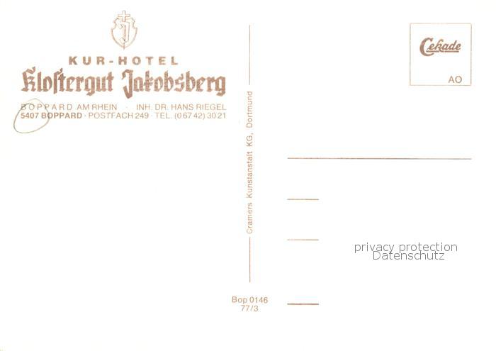 73835124 Boppard Rhein Kur Hotel Klostergut Jakobsberg postalisch nicht gelaufen Erhaltung siehe scans [WerneD78] KatCode: 11110007140501