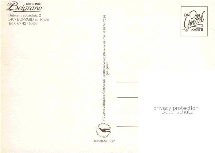 72927267 Boppard Rhein Kurklinik Belgrano postalisch nicht gelaufen Erhaltung siehe scans [KathaD81] KatCode: 11110007140501