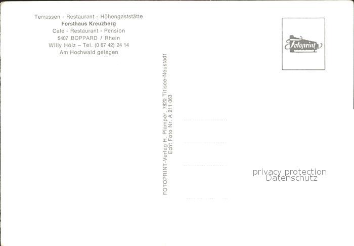72074546 Boppard Rhein mit Restaurant Forsthaus Kreuzberg postalisch nicht gelaufen Erhaltung siehe scans KatCode: 11110007140501
