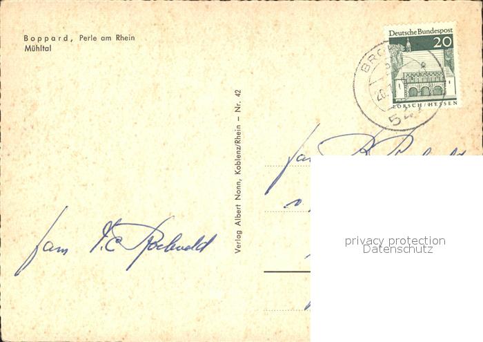 72392320 alte Postkarte Boppard Rhein Muehltal postalisch gelaufen Erhaltung siehe scans KatCode: 11110007140501