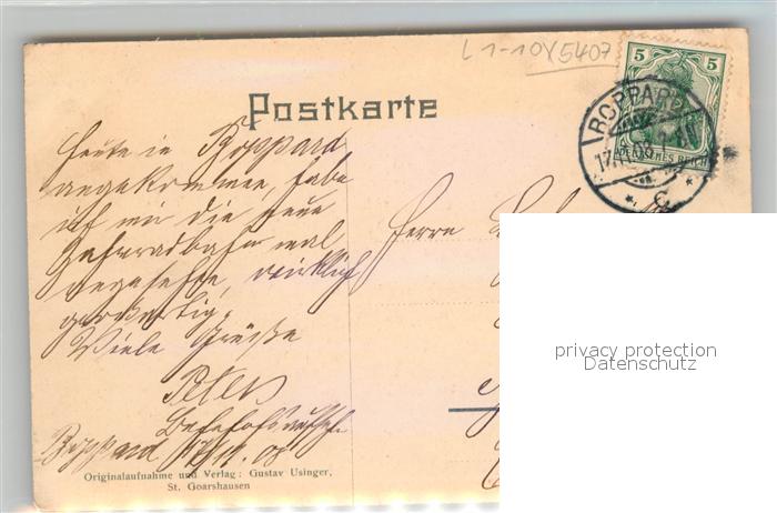 42975671 alte Postkarte Boppard Rhein Neue Hunsrueckbahn Boppard Simmern postalisch gelaufen Erhaltung siehe scans [KathaD81] KatCode: 11110007140501