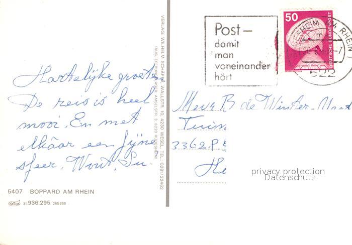 72944576 alte Postkarte Boppard Rhein Panorama Blick ueber den Rhein Ausflugsdampfer postalisch gelaufen Erhaltung siehe scans [FriedD77] KatCode: 11110007140501