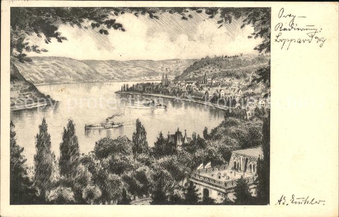 41578223 Boppard Rhein Rhein-Panorama Künstlerkarte KatCode 11110007140501