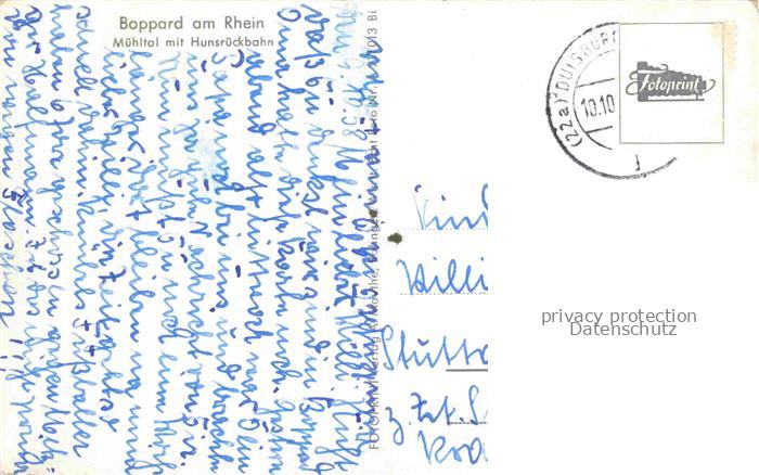 74121680 alte Postkarte Boppard Rhein Rheinland-Pfalz Panorama Muehltal mit Hunsrueckbahn Dampflokomotive postalisch gelaufen Erhaltung siehe scans [FriedD77] KatCode: 11110007140501