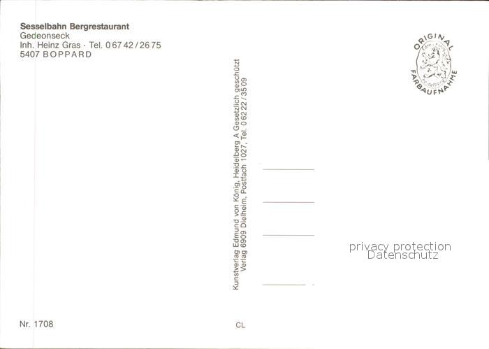 72922932 Boppard Rhein Sesselbahn Bergrestaurant Gedeonseck postalisch nicht gelaufen Erhaltung siehe scans [PaolaD17] KatCode: 11110007140501