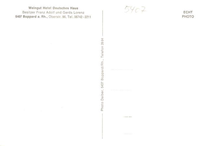73872427 Boppard Rhein Weingut Restaurant Deutsches Haus postalisch nicht gelaufen Erhaltung siehe scans [FriedD77] KatCode: 11110007140501