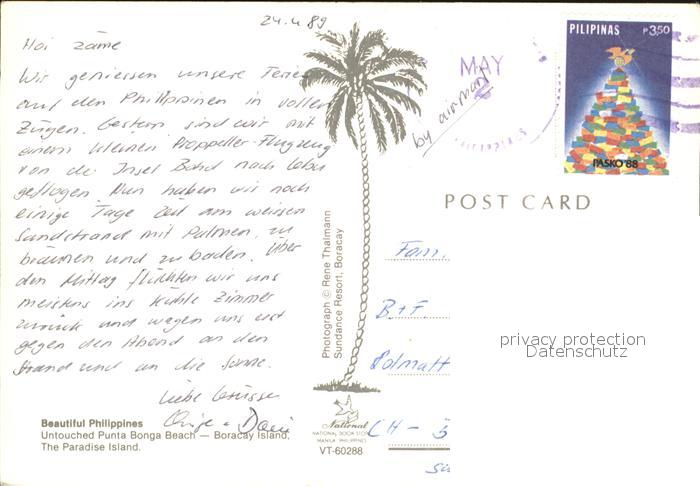 alte Postkarte Boracay The Paradise Island postalisch gelaufen Erhaltung siehe scans [WerneD78 kt117box]