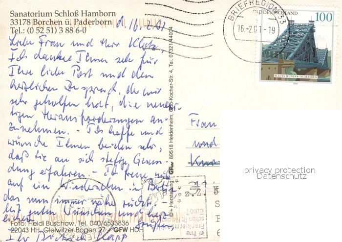 73670039 alte Postkarte Borchen Sanatorium Schloss Hamborn Park Teich Landschaftspanorama postalisch gelaufen Erhaltung siehe scans [FriedD77] KatCode: 11110005774012