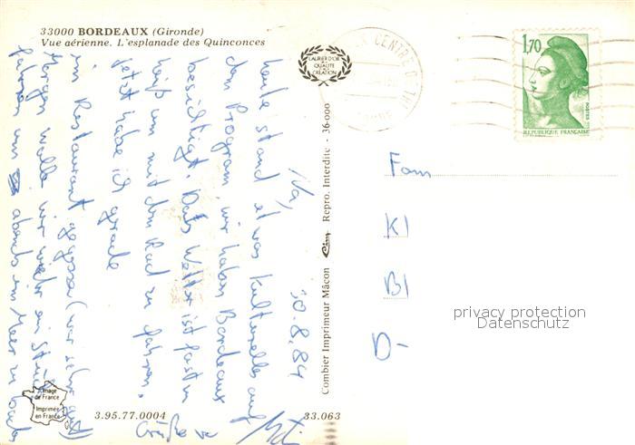 13224153 carte postale Bordeaux Esplanade des Quinconces vue aérienne postalisch gelaufen Erhaltung siehe scans [FriedD77] KatCode: 11170033233063
