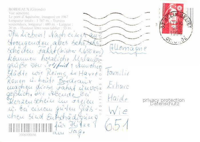 12790579 carte postale Bordeaux Fliegeraufnahme Brueckenpartie postalisch gelaufen Erhaltung siehe scans [LiesaD40] KatCode: 11170033233063