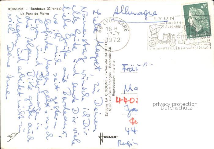 12598446 carte postale Bordeaux Fliegeraufnahme Pont de Pierre postalisch gelaufen Erhaltung siehe scans [LiesaD40] KatCode: 11170033233063