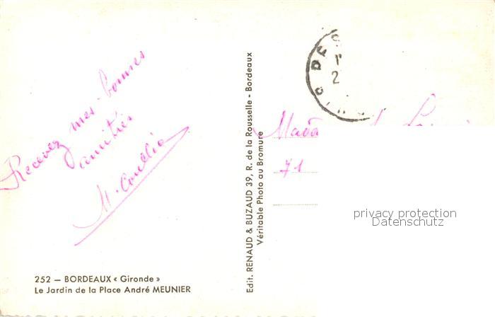 13585015 Bordeaux Jardin de la Place André Meunier postalisch gelaufen Erhaltung siehe scans [FriedD77] carte postale Frie Katcode 11170033233063