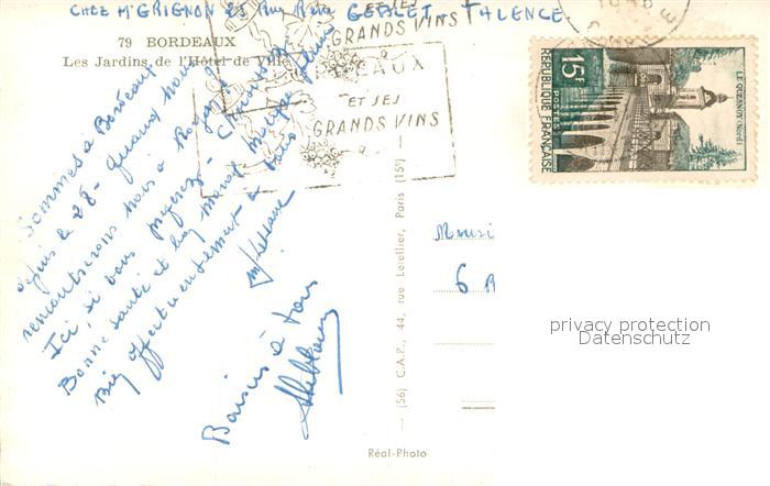 13640053 Bordeaux Jardins de l Hôtel de Ville Monument postalisch gelaufen Erhaltung siehe scans [FriedD77] carte postale Frie Katcode 11170033233063