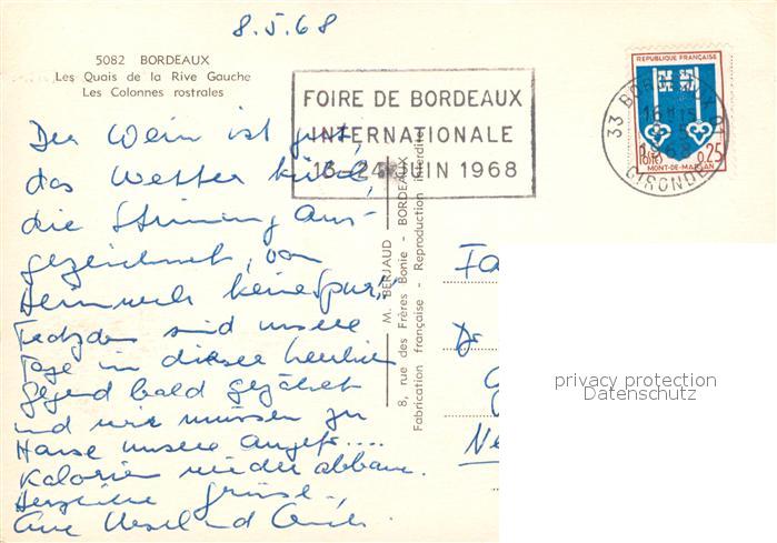 13293513 carte postale Bordeaux Kaianlagen Hafen postalisch gelaufen Erhaltung siehe scans [KathaD81] KatCode: 11170033233063