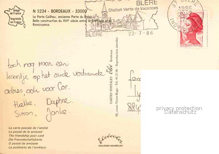 12893084 carte postale Bordeaux La Porte Cailhau postalisch gelaufen Erhaltung siehe scans [LiesaD40] KatCode: 11170033233063