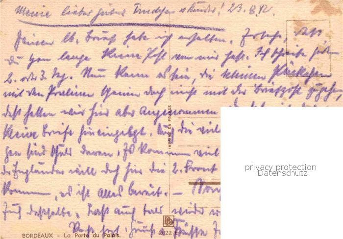 12822279 Bordeaux LaPorte du Palais postalisch nicht gelaufen Erhaltung siehe scans [AndreD76] KatCode: 11170033233063