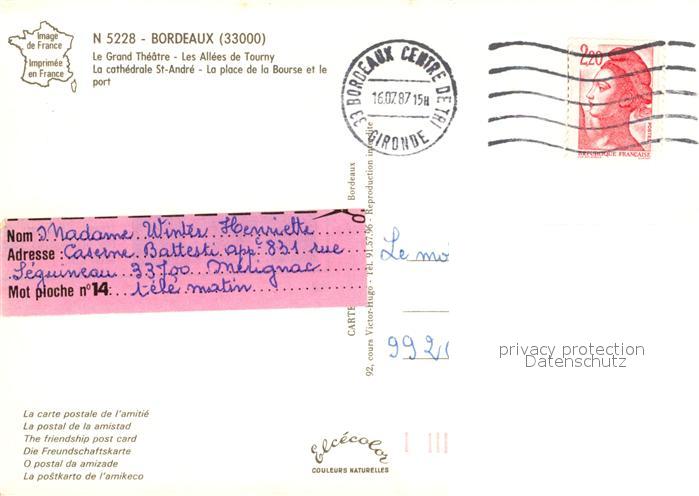 13213706 Bordeaux Le Grand Theatre Les Allees de Tourny La Cathedrale St Anddre La place de la Bourse et le port KatCode 11170033233063