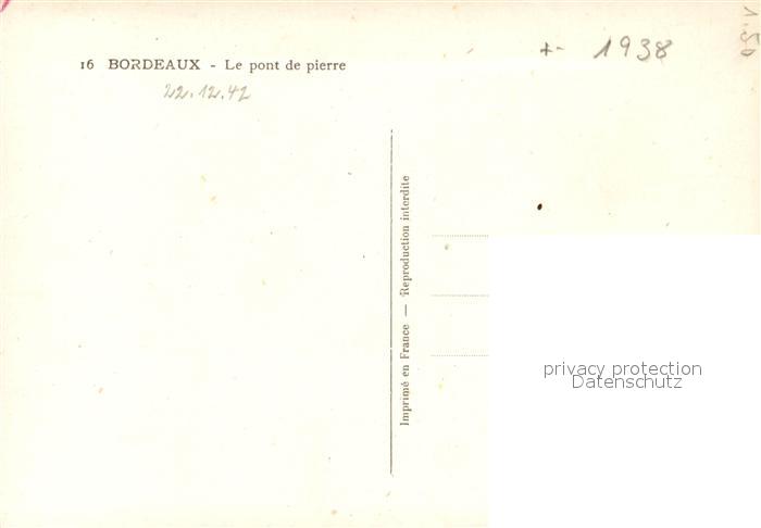 13063732 carte postale Bordeaux Le pont de pierre postalisch gelaufen Erhaltung siehe scans [FriedD77] KatCode: 11170033233063