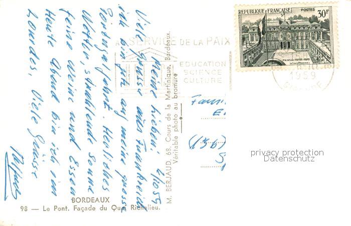 13021590 carte postale Bordeaux Le pont Facade du Quai Richelieu postalisch gelaufen Erhaltung siehe scans [WerneD78] KatCode: 11170033233063