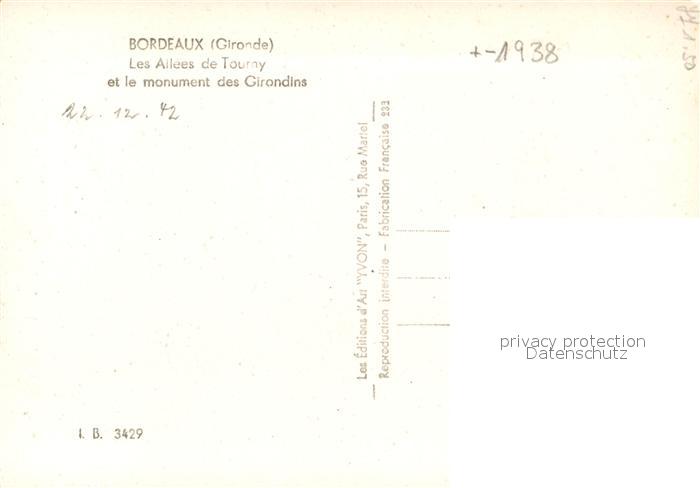 13071903 Bordeaux Les Allees de Tourny Monument des Girondins postalisch nicht gelaufen Erhaltung siehe scans [FriedD77] KatCode: 11170033233063