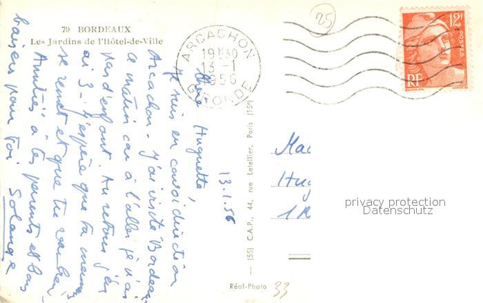 13504559 carte postale Bordeaux Les Jardins de l’Hotel de Ville postalisch gelaufen Erhaltung siehe scans [WerneD78] KatCode: 11170033233063